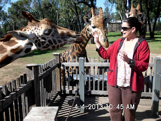 Cool night made for comfortable sleeping. Had a quick breakfast and off to the Zoo. We got there just after opening to get the extra tickets for the Giraffe feeding. We parked near the Black Rhinos and went and waited for the 09:25 Keeper Talk. The Keeper gave an informative talk on the poaching of Rhinos and the destruction it causes. Next we walked to the Meerkat exhibit to learn about how they maintain their numbers to suit the environment. We moved to the Giraffe feeding and Amanda & Amy has decided that Giraffe saliva is not nice. It has the consistency of a snotty/slime! We had morning tea at then watched the Hippo's get fed. Happy made room for his feed by spraying his last meal out the back end, it was like watching a lawn mower pass over a large pile of cut grass. We learnt about the differences between Asian and African Elephants, and watched the Sumatran Tiger (from Dreamworld Qld) get her meal from a Hessian bag. We watched the small claw otters being fed prawns. Amy & Amanda learned about the two Przewalski Horse foals being born 2 days apart. We picked some souvenirs at the shop and off to Town. We picked up maps from the Visitor Centre and parked nearby because the Main St only has 1 hour parking. We had fun at the Old Gaol looking in the solitary confinement cell was scary. We haven't been in any thing that dark since Potter's Gorge in West Australia last year. Picked up laundry supplies at Woollies - missed the Japanese Gardens by 10 minutes. Pooped into Ryan's Caravans and Les met Scott Black and thanked the Office Girls for posting our replacement water pump parts to Darwin last year. A big day for all - will sleep well tonight.